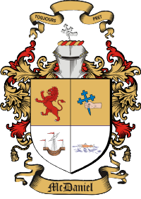 Nationalty* | The nationality of Harold Russell McDaniel was Scottish and the motto of the McDaniel family coat of arms shown to the left is "Toujours Pret" which means Always Ready. |